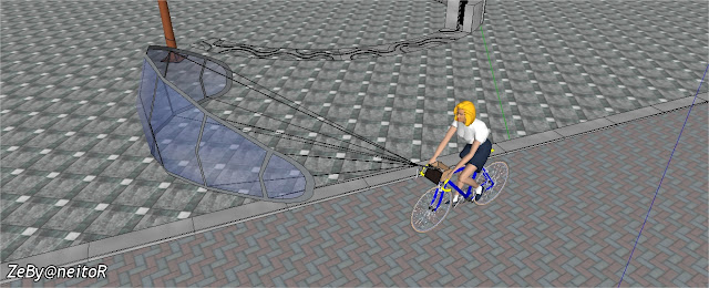El usuario tendría en la bicicleta una canastilla en la parte delantera, y solo cuando las circunstancias fueran propicias, abriría y desplegaría la cometa ayudadora. A la inversa, cuando el viento sople en contra o haya obstáculos que fueran incompatibles con el volumen o longitud de la cometa.