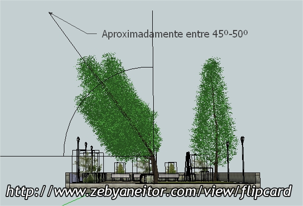 Se trata de crear un nuevo negocio de estructuras de arboles en jardines. Es fácil criar arboles de sombra, igualmente también es fácil deformarlos para se inclinen alrededor de 45º o 50º... Podríamos aprovechar este viraje para producir sombra, y en algunos casos costos energéticos, así mismo, conseguir bienestar en las personas, sobretodo en zonas tórridas como Sevilla o Córdoba.
