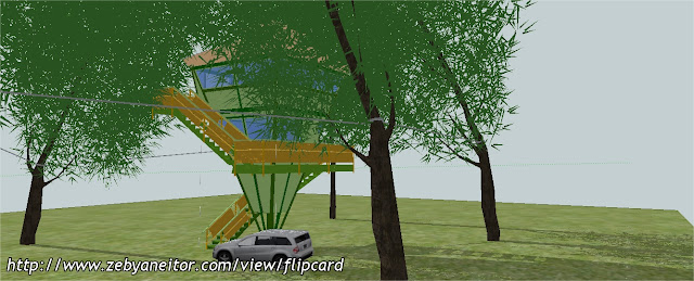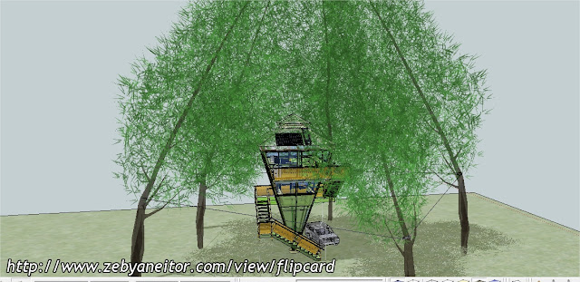 El ultimo es una casa supermoderna, totalmente tapada por 5 gigantescos arboles que le atenuaran unos pocos grados en verano y protegerán la fachada de la lluvia y el viento en invierno.