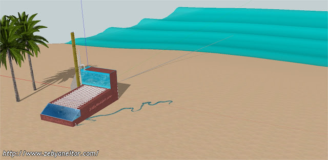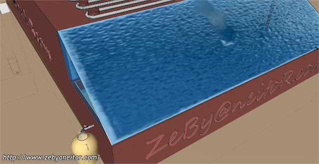 Con una bomba de agua de soga extraemos agua de el mar (la extracción la he efectuado en 90º, según el funcionamiento original, no creo que haya ningún problema en este tipo de cambio), esta agua salada la introducimos en un deposito que tiene debajo una abertura pequeña, en el centro.