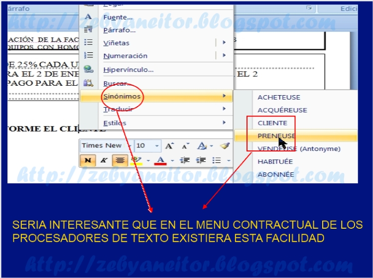 He pensado que las empresas de creación de programas informáticos, podrían incorporar a los programas de procesamiento de texto, la facilidad de crear una frase y sugerir una palabra apropiada y que simplifique la frase hecha. Por ejemplo, estoy comiendo por la mañana, sugeriría: estoy desayunando, haría mas especifica y culto las redacciones de los escritores potenciales.