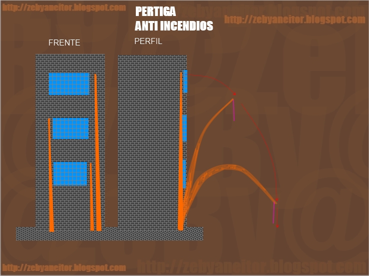 Es muy simple, se trata de una pértiga que estaría adjuntada, en los aledaños de balcones o ventanas, igual que en el sistema anterior, iria complementada de una anilla que seria la union con el arnés que previamente tendria que colocarse el auxiliado.