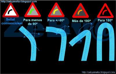 Muchas veces, esta señal esta sobre-dimensionada y otra veces infra-dimensionada, con esto quiero decir que muchas curvas, pueden ser mas o menos cerradas y eso no se señala en el código de circulación, en mi opinión, es un retraso no señalar que cantidad de grados tienen estas curvas, nos ahorraríamos sustos.