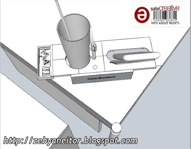 La base de la idea es colocar en una bandeja, huecos, donde depositar estos objetos que olvidamos o son peligrosos, y ademas que se coloquen a cierta altura del nivel de escritura o trabajo.