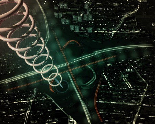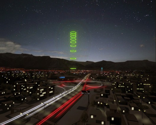 que consiste en la instalación de un sistema compuesto por grandes anillos de helio colocados a cierta altura sobre los nodos críticos de la ciudad. Son elementos dóciles al movimiento provocado por los vientos, conectados a un tensor, quedan a merced del viento como volantines, pero si el viento fuera demasiado fuerte, son capaces de recogerse hasta su base mediante un “winche” instalado en su base. Así mismo, son elementos dóciles a los cambios de luz, reflejando el sol de día e iluminándose de noche mediante luces leds de alta luminiscencia. La energía necesaria para hacerlos funcionar proviene de unos paneles solares ubicados en la base del proyecto.