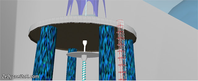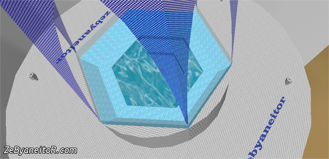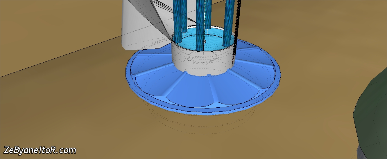 - Acto seguido, el deposito primario se queda vacío. Como observareis, existen unos muelles, que ejercerán una fuerza en vertical hacia arriba, anclandolo donde estaba al principio y vuelta a empezar y a recopilar agua con la pirámide