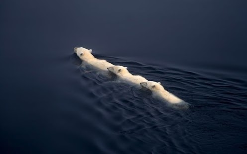 - Me apoyo en el ámbito natural, la naturaleza ya descubrió hace tiempo este concepto. Cuando una especie animal, ha viajado por fluidos y en grupo de manera habitual....la evolución les sugiere, que el grupo, aporta algo mas que seguridad. De hecho mirad la fotografía de estos osos, saben que con formación en fila ahorran energía, van uno detrás de otro para economizar tiempo y fatiga.