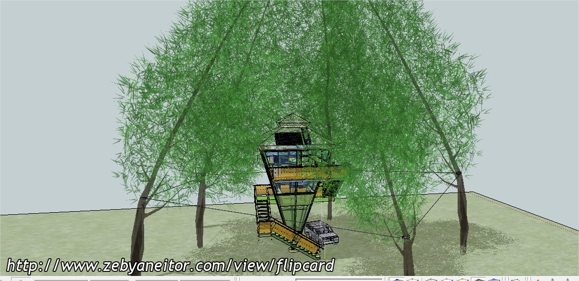 El ultimo es una casa supermoderna, totalmente tapada por 5 gigantescos arboles que le atenuaran unos pocos grados en verano y protegerán la fachada de la lluvia y el viento en invierno.