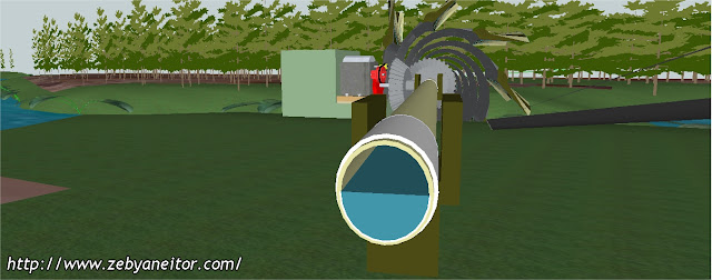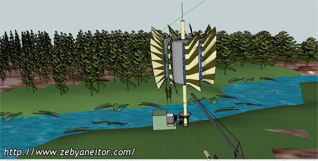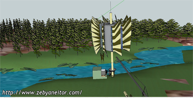 Os dejos los prototipos gráficos, escenifico primero el diseño en si mismo, después la instalación como noria y posteriormente como molino eólico.