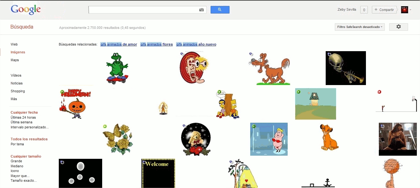 La sistemática seria idéntica como para buscar imágenes o vídeos, pero esta vez serian GIF y ademas se verían en movimiento!