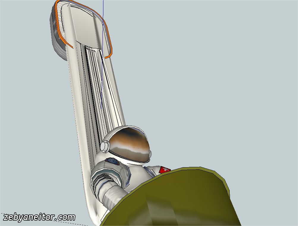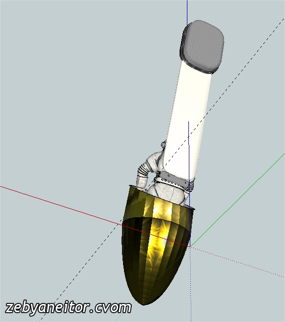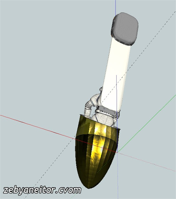 Para controlar mas aun el "bulto" humano, he pensado que el paracaidas podría "estirarse" hacia arriba en la caida, de forma que sirva de contrapeso (como una cometa) para que cuando baje no deambule a tontas y a locas, igualmente conseguimos que su cuerpo siempre vaya alineado con la capsula de forma segura, para mas información ved los dibujos anexos.